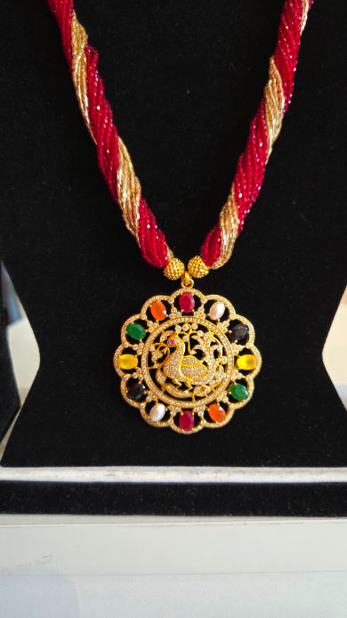 Chiffon pote with Hydro Crystal American Diamond Pendent Tejasvi