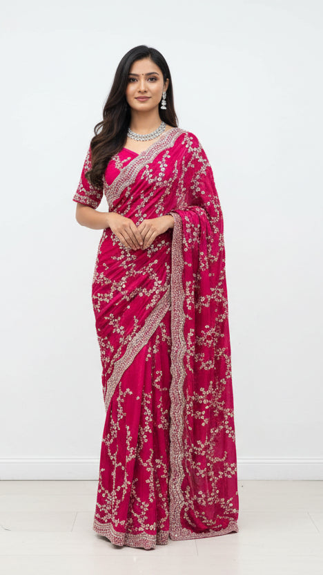 Pair it with statement jewellery and a complementing blouse to complete a look that blends classic tradition with contemporary charm.