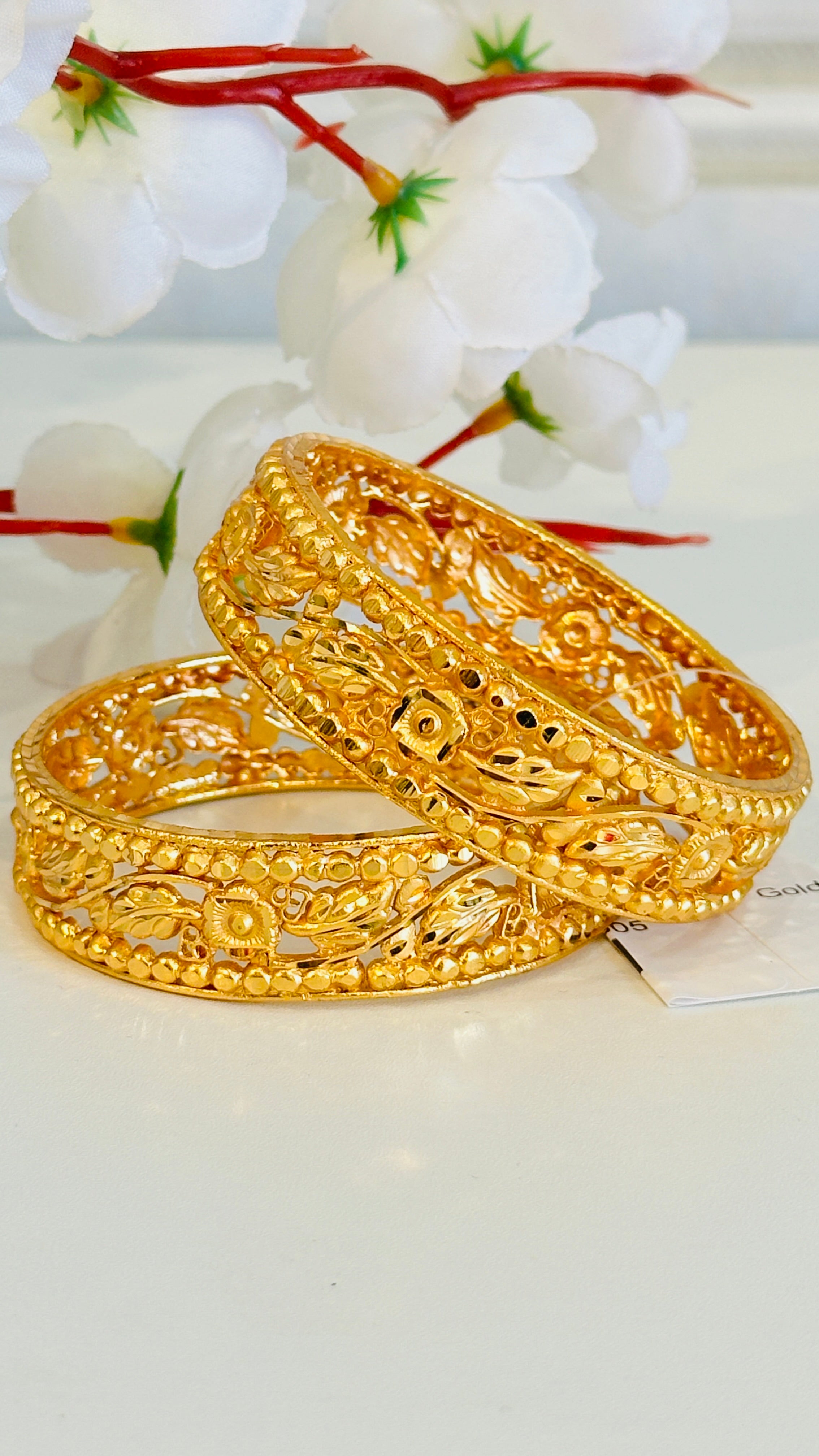 Gold Plated Bangles. Latest Gold designer bangles Jewelry for women perfect to wear to parties and marriage functions with traditional attire.