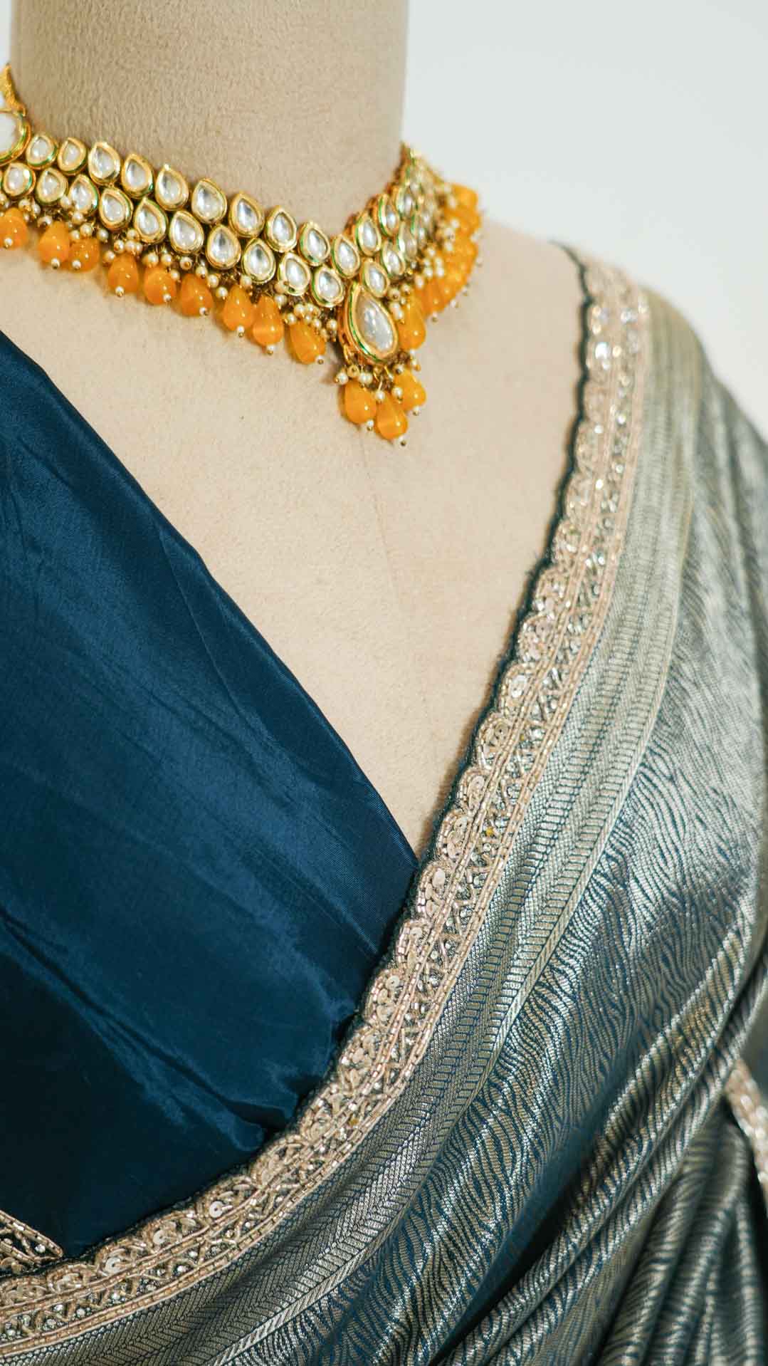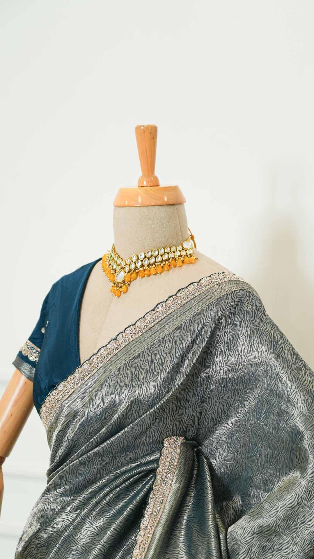 Pair it with statement jewellery and a complementing blouse to complete a look that blends classic tradition with contemporary charm.