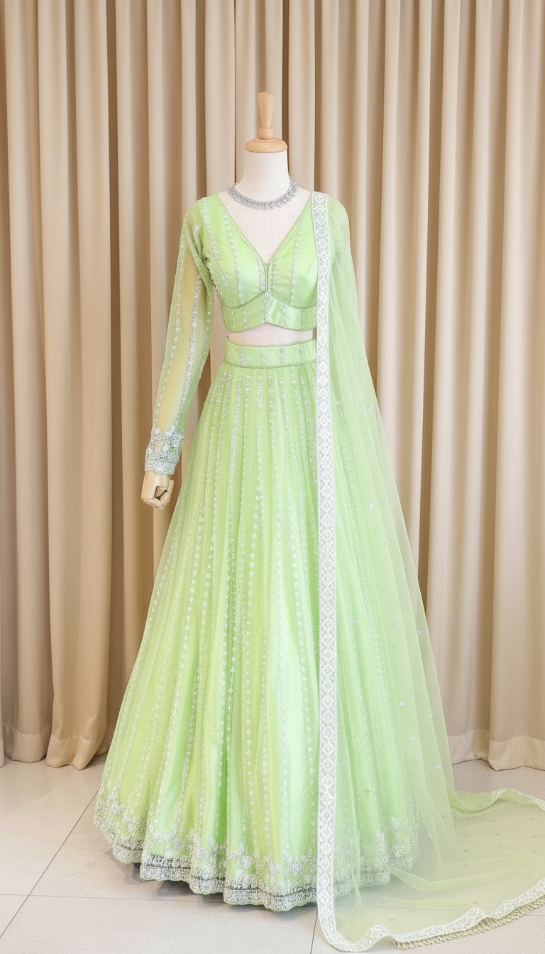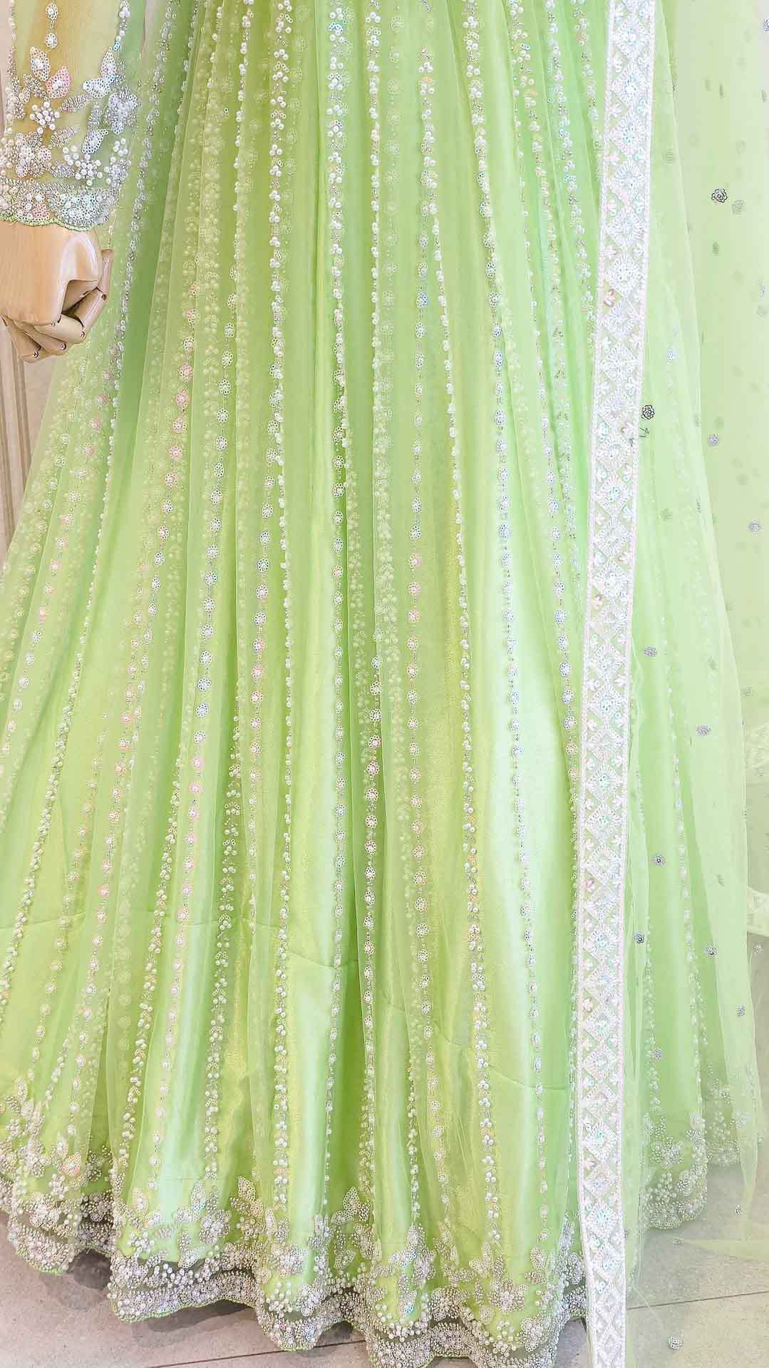 Lime Green Pearl and Beads Handembroidered Lehenga Panache