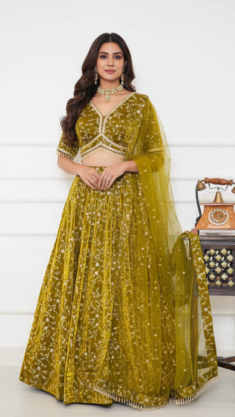Mehendi Green Fendi Sequin Embroidered Lehenga Set