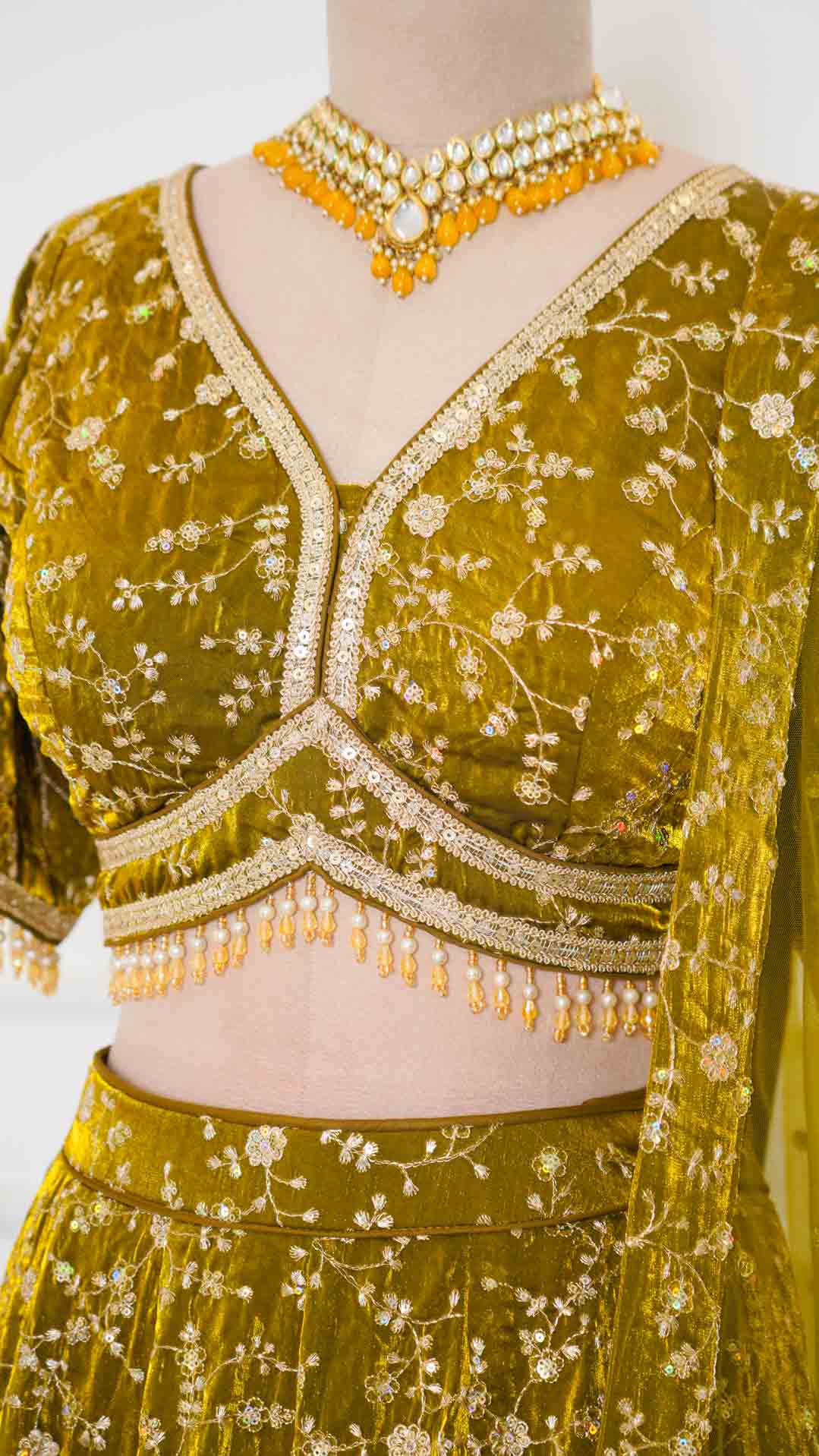Lehenga is finished with a zip closure