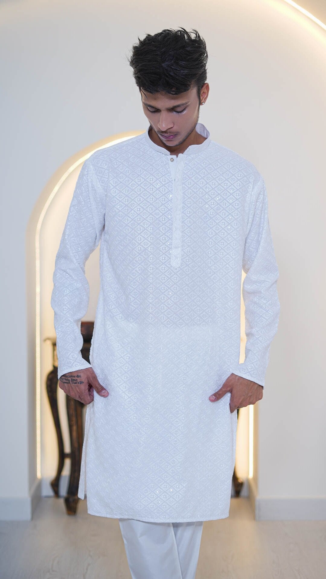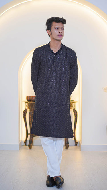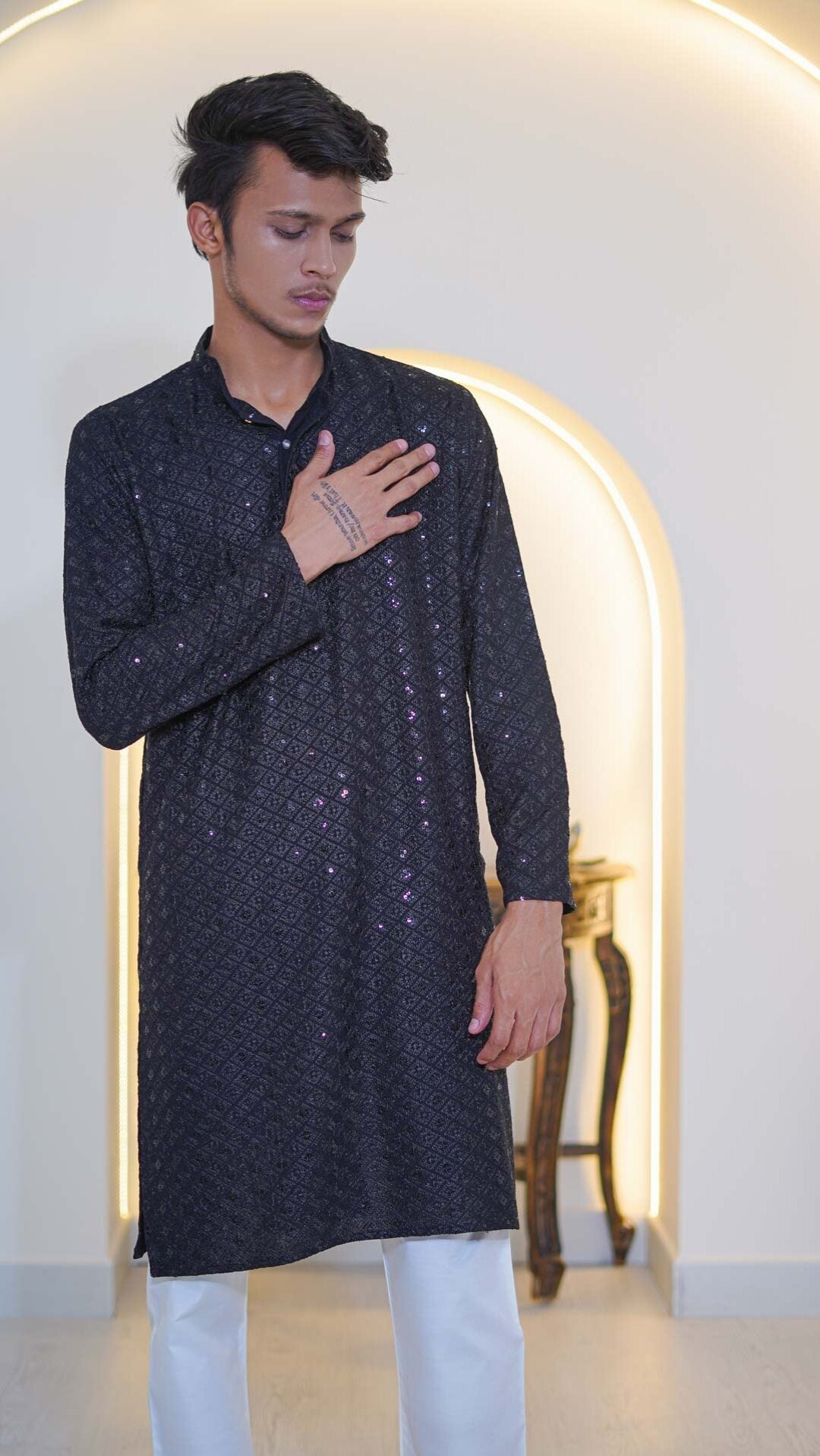 Discover the elegance of our Men's Kurta with Resham Thread, made from luxurious pure rayon fabric. Adorned with water sequins embroidery, this kurta sparkles like no other, blending traditional craftsmanship with modern style. The breathable fabric drapes beautifully, offering both comfort and a flattering fit. Perfect for festive occasions or casual outings, this versatile piece is a must-have for any stylish man's wardrobe.