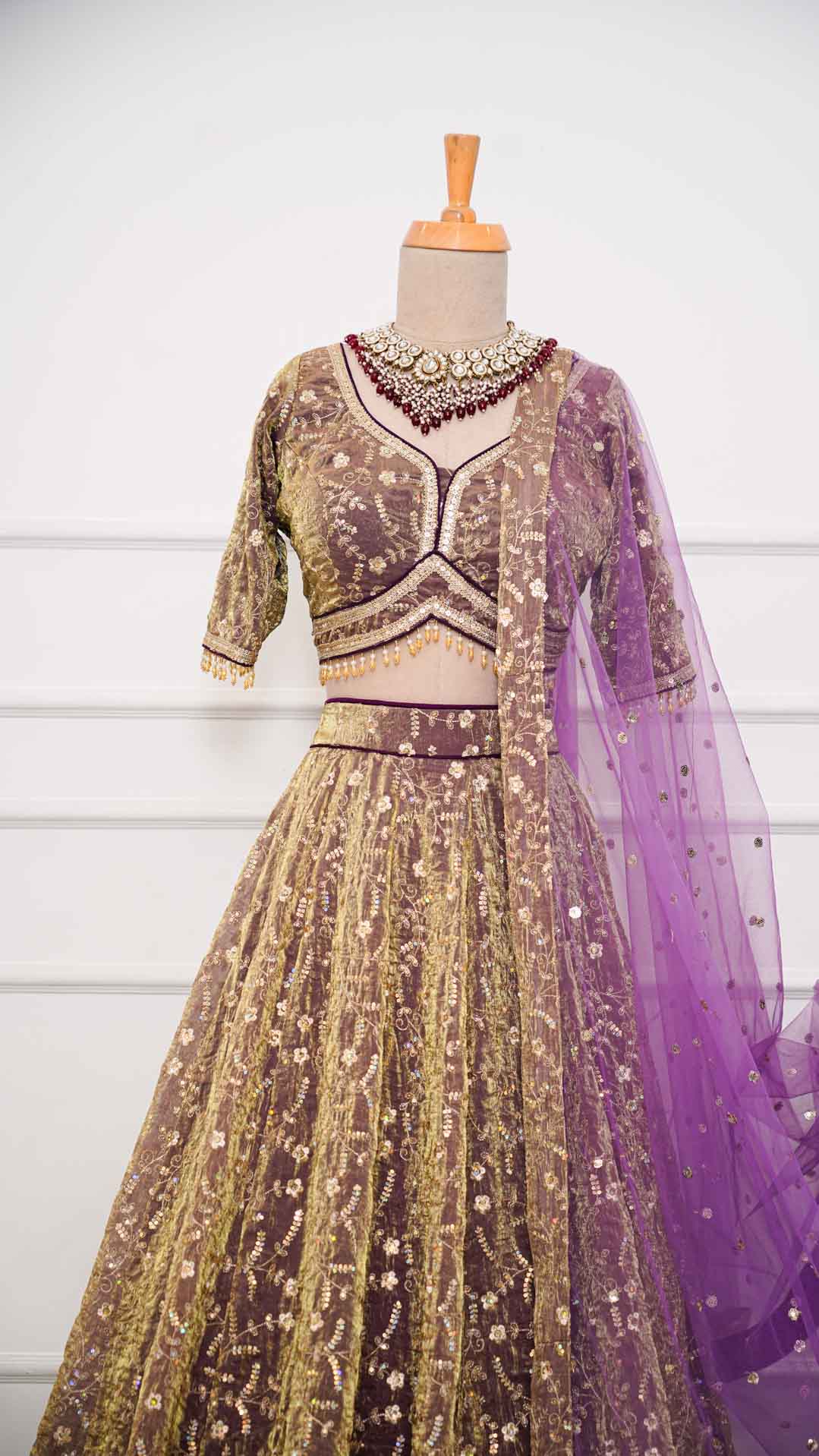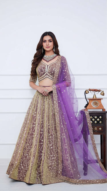 Metallic Fendi Golden Sequin Embroidered Lehenga Set