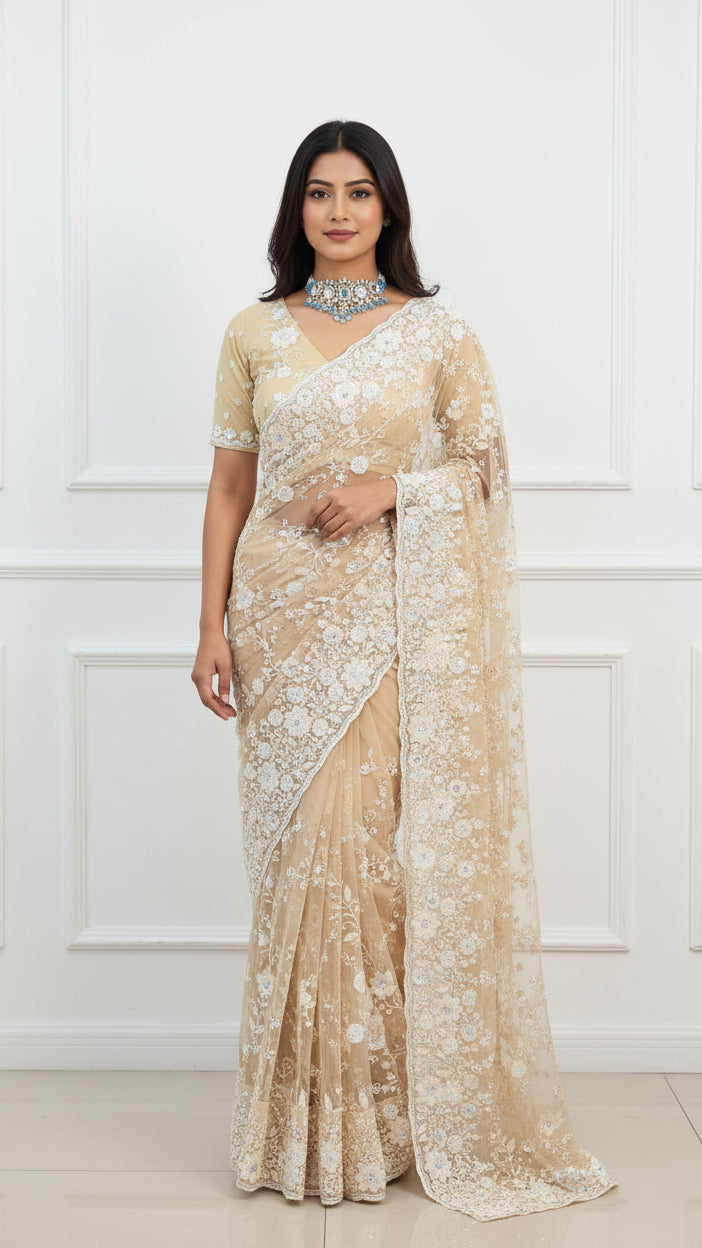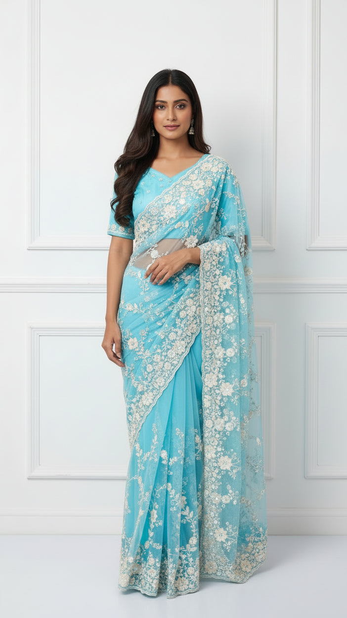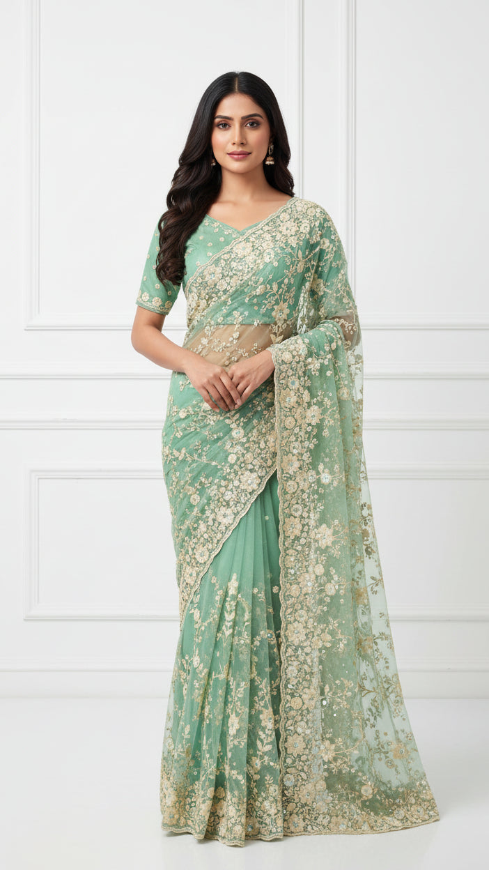 Pair it with statement jewellery and a complementing blouse to complete a look that blends classic tradition with contemporary charm.