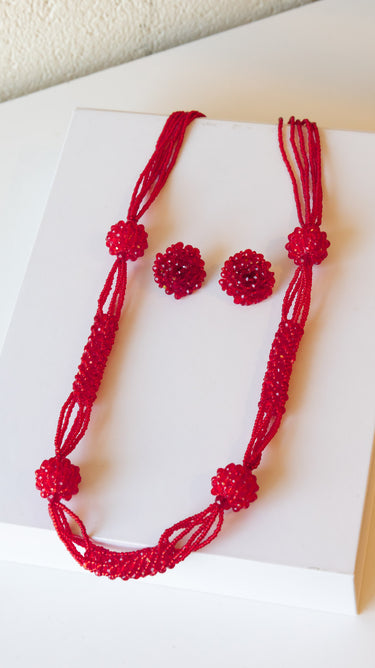 Red Multicolor Crystal Potey Bead Necklace with Earrings