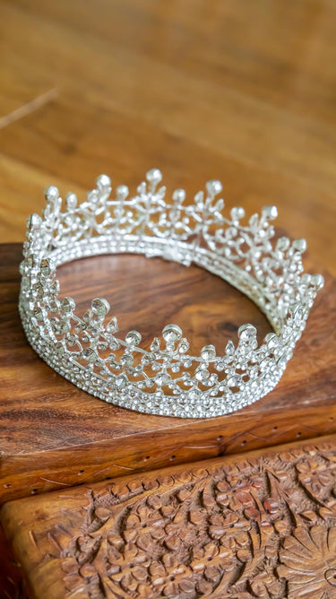 This exquisite silver imitation and stones crown is the perfect accessory for brides, designed to elegantly secure the veil in place while adding a touch of regal beauty. Crafted from high-quality light metal, the crown features delicate stone embellishments that shimmer with every movement, creating a stunning contrast against the bride’s attire. Its timeless design ensures that it complements a variety of bridal looks, from classic to contemporary, while providing both functionality and style. Ideal for weddings, this crown not only keeps the veil secure but also enhances the bride’s overall elegance on her special day.