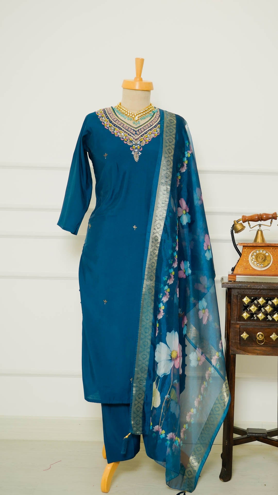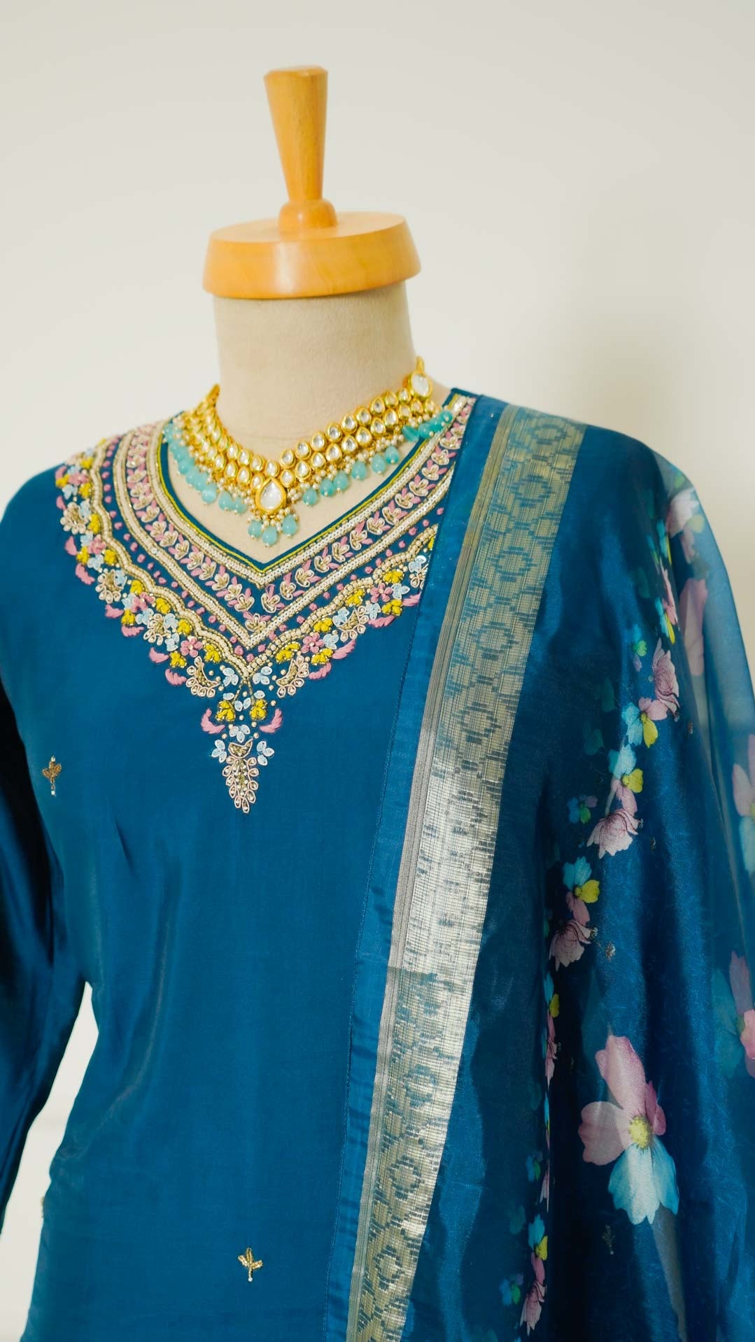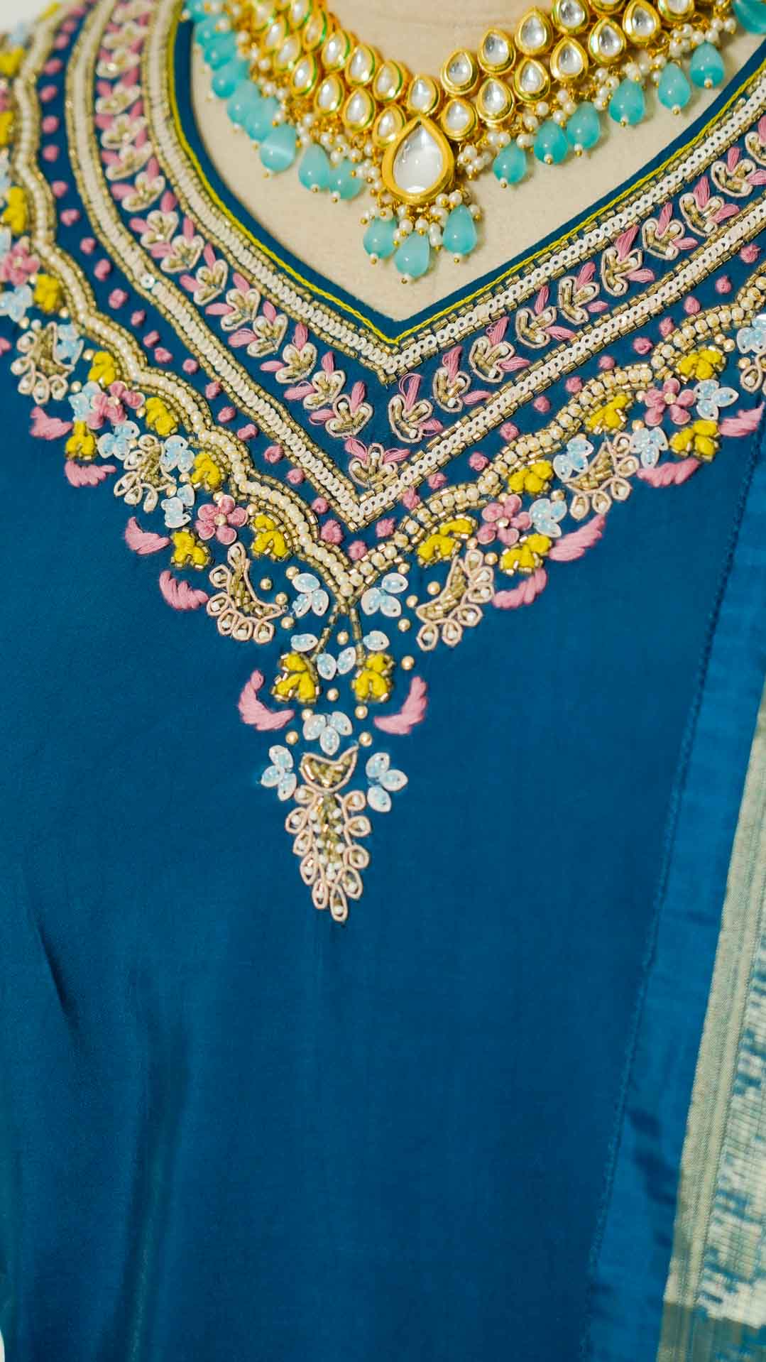 This kurta set features delicate handwork that adds a touch of elegance to your everyday look. Paired with a rich Banarasi shawl, it offers both comfort and style, perfect for casual outings or relaxed gatherings. The combination brings a subtle yet sophisticated charm to your wardrobe.